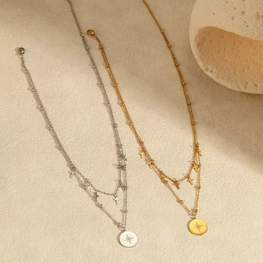 18K Gold-Plated Cross Double Layered Pendant Necklace