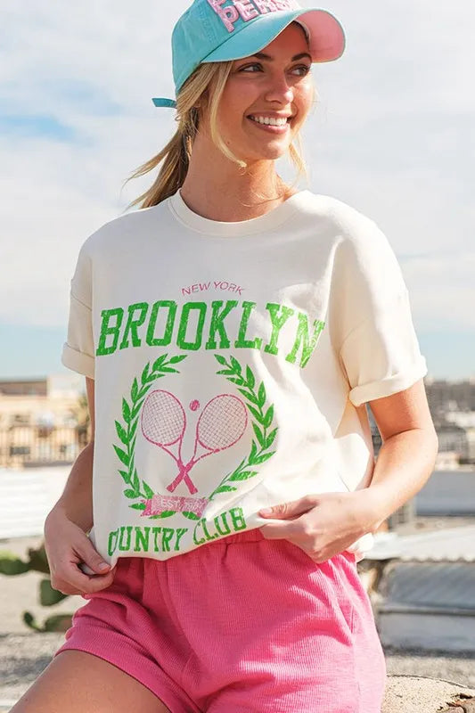 Lime 'N' Chili Brooklyn Graphic Round Neck Short Sleeve Top
