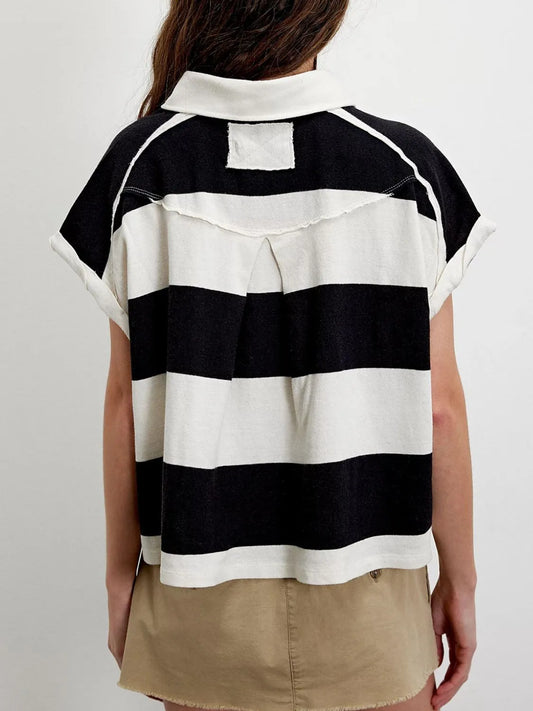 Striped Collared Neck Short Sleeve Top